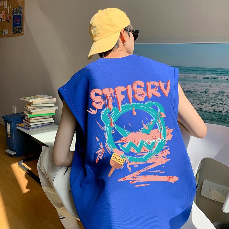 Yan Xuan 2024 New Summer Korean Printed Sleeveless Tank Top Casual Round Neck Men's Sports and Fitness Sweatshirt