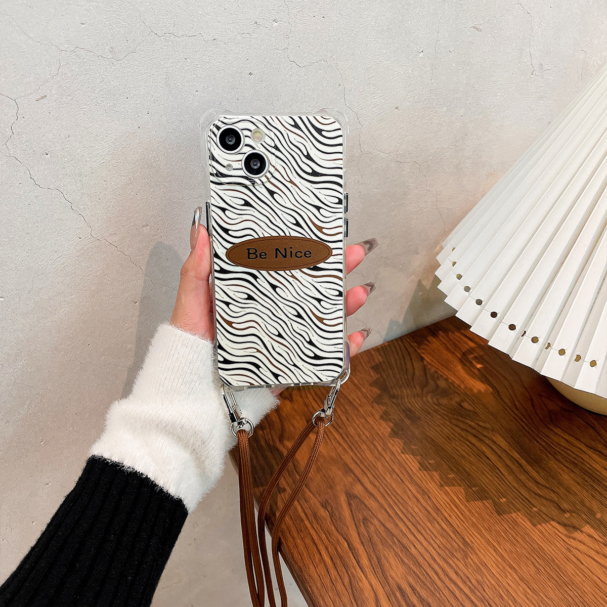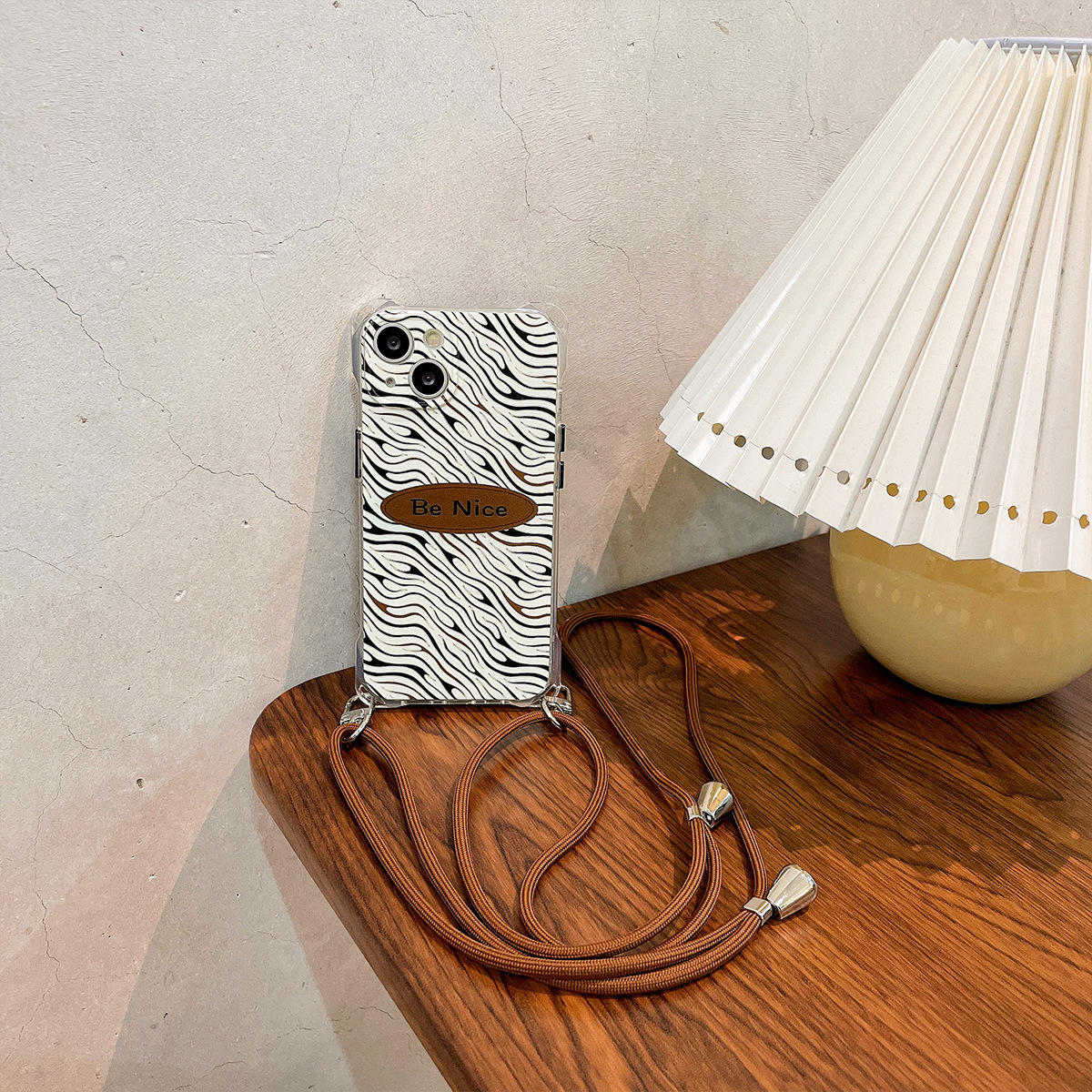 Zebra pattern premium feel, suitable for Apple 15 promax drawstring phone case, iPhone 14 chain can be crossbody