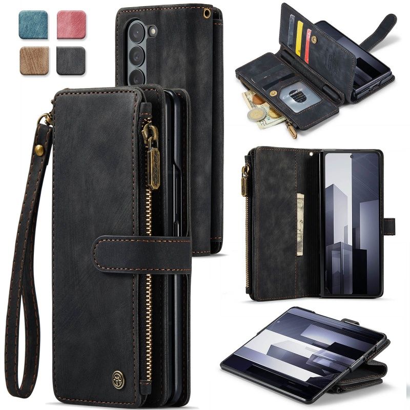 Zipper Wallet Card Phone Case For Samsun Galaxy Z Fold 6 5 4 Fold6 Fold5 Fold4 Lanyard Leather Flip Purse Cover Back