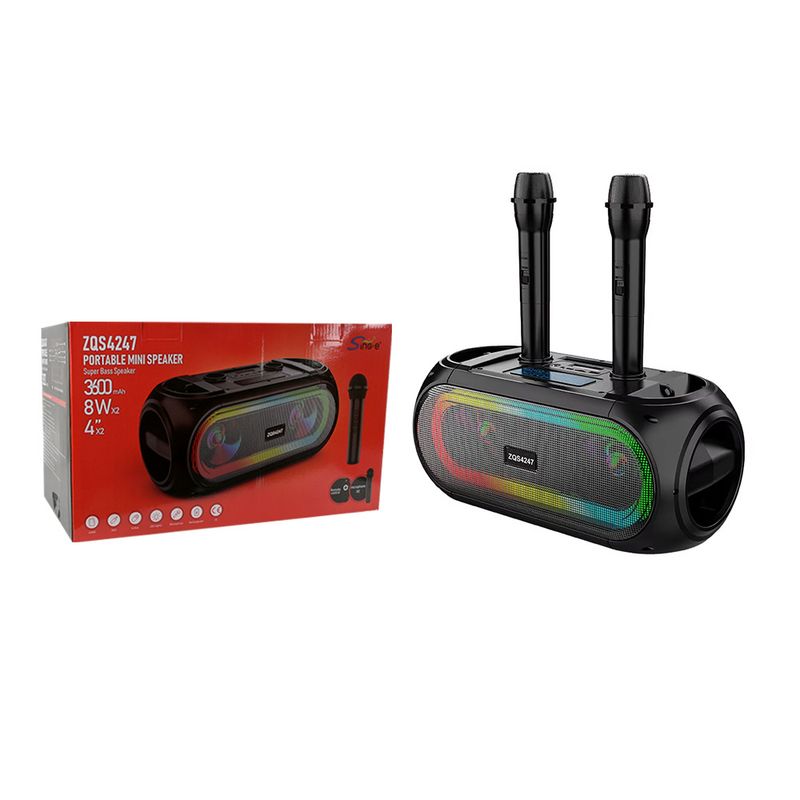 ZQS4247 Outdoor Portable Dual Wireless Microphone Bluetooth Speaker Home Karaoke Live Guide Audio